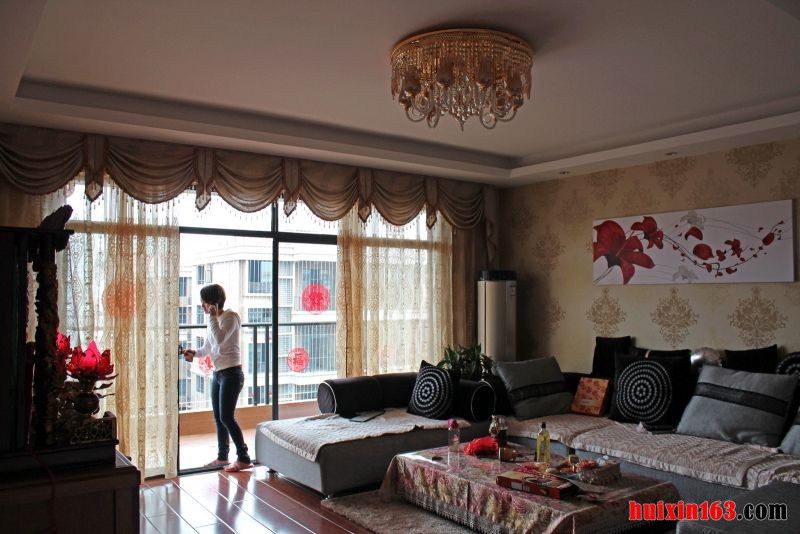 中央尊馆,140平米三居室,采用现代简约的装修风格,本案例是一套实景效果图,不管是空间的格局布置还是造型的设计等等,都显得比较温馨、时尚,在客厅的布置当中,采用平顶式的石膏板吊顶,搭配上一盏华丽的吊灯,个性的造型更是凝聚着视觉焦点,推拉门的设计连接的是室外阳台,搭配上轻质的窗帘,让空间的采光更加的饱和,图中可看出女业主站在门边上打电话,其画面更是展现出一种亭亭玉立之美,反观书房的设计,实木铺设的地板以及实木制作的书桌柜,迎面就能感受到浓烈的书香味气息,一盏精致独特的吊灯造型更是将空间演绎得完美无缺,由此可见合理的空间布局往往都能装饰出一个让我们称心如意的环境。