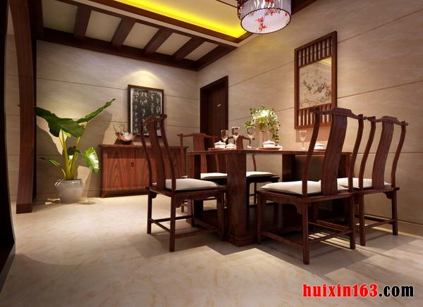 广源国际-160平米三居室-中式风格装修效果图-餐厅