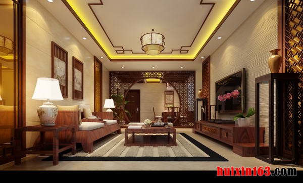 广源国际,160平米三居室,采用中式风格的装修风格,在本案例的装修设计当中,不管是造型的设计还是色彩的搭配都完美的将中式风格的形神特征演绎得淋漓尽致,在客厅的设计当中采用平顶式的石膏板吊顶,实木线条的搭配设计让空间的造型显得更加独特别致,夹层内黄色光晕的衬托更是演绎出一种低调的奢华美感,传统却又新颖的茶几以及沙发造型添加,迎面就能感受到浓烈的木质气息,客厅和餐厅的连接位置采用的是月亮门的设计,在局部更是体现出一种古典的气息,一盏富有文化气息的吊灯安装,如同灯笼的灯罩设计,也展现出一种别样的美感。