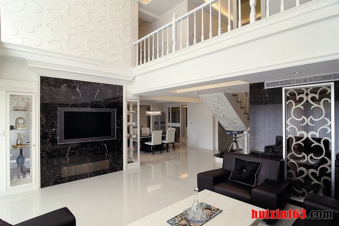 联发旭景,198平米的四居室,采用现代简约的装修风格,简约风的装修一定要展现出一种极致的美感,该风格最大的特点就是通过大量的留白处理,营造出一种惬意舒心的感觉,本案例的设计营造出来的是一种黑白搭配的经典造型,例如客厅的装修布置,所占据的空间面积并不是很大,但却显得比较别致舒适,电视背景墙以大理石为背景,在局部营造出一种低调的奢华美感,洁白的地砖与整个空间的色彩相互协调统一,黑色皮质的沙发添加,正好在空间中起到一个色彩的点缀效果,不至于让居室环境的色彩显得过于单调压抑,如果在适当的添置一些绿植,其装饰效果会更加完美。