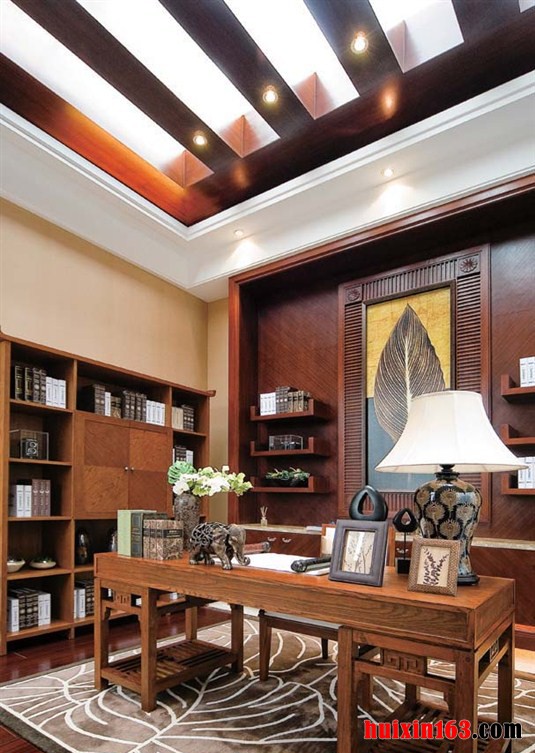 时代香耕苑-别墅-美式风格装修效果图-书房