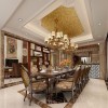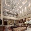 本案例是一个欧式风格得装修设计,在客厅的装修当中,从空间的布局以及造型的设计来看,彰显出一种宽敞、时尚、雅致以及端庄融于一体居室环境,在客厅的布置当中,别致的吊顶,柔美的线条感演绎出一种别样的风情,一盏霸气外露的水晶吊灯,更是将客厅的美感展现得淋漓尽致,西式沙发的添加更是突出该风格的形神特点,洁白亮丽的地砖铺贴与吊顶上下相互呼应,而沙发背景墙上放悬挂了一张自然风景的壁画,更是展现出一种艺术的氛围,其后就是餐厅区域的设计,在视觉效果上也呈现出一种宽敞的感觉,如果在添置一些绿植来活跃空间的色彩氛围,那么装饰出来的效果会更加完美。