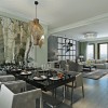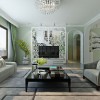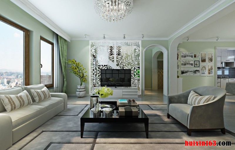 广源国际,本案例是一套别墅的装修设计,采用的是现代简约的装修风格,在客厅的装饰布置当中,平顶式的石膏板吊顶搭配上一盏华丽霸气的水晶灯吊灯,将空间演绎得比较时尚唯美,背景色彩以白色为主,在造型以及色彩的搭配上会让空间的设计变得更加的轻松自然,沙发背景墙后就是窗户的设计,不仅起到一个装饰空间的作用,而且空间的照明程度变得更加的明亮透彻,个性的电视背景墙,是一个雕花屏风的设计,在视觉效果上让空间显得比较有创意感,一颗绿植的添加摆放更是突出一种艺术的氛围,整个空间的背景墙都以浅青色的色彩为主,更是展现出一种惬意舒适的感觉。