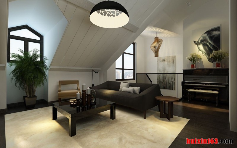 广源国际-别墅-现代简约装修效果图-二楼客厅
