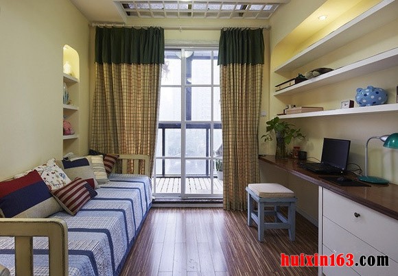 本案例采用的是美式风格的装修风格,整个空间的装饰布置,没有做太多的修饰,却展现出一种温馨与舒适,在客厅的装饰布置当中,所占用的空间面积并不是很大,但却显得比较独特别致,造型独特的吊顶设计,背景色彩以白色为主,搭配上一盏黑色的铁艺吊灯,让空间显得比较唯美、浪漫,精致的电视背景墙更是客厅设计的一大亮点所在,造型独特,两盏射灯的安装,若影若现的灯光效果,更是演绎出一种朦胧美感,开放式的餐厅设计,让这个空间显得更加具有创意,餐厅设计在楼梯下,圆形的餐桌造型,体现出一种合家团圆的意境,一束花卉的添加更是将餐厅的美展现得淋漓尽致。