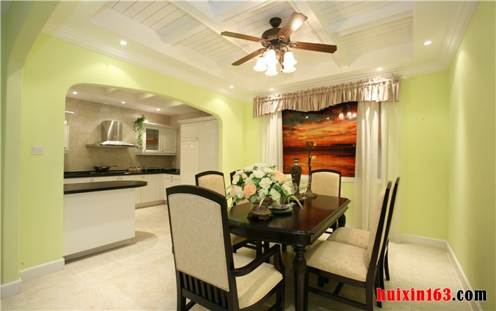 宁静淡雅的田园风格是目前很多都市青年比较热衷一种居室装修,通过对色彩的搭配以及家居的布置,演绎出一种大自然的风情,在本案例的设计当中,展现出来的是一种洁净的美感,客厅采用平顶式的石膏板吊顶,背景色彩以白色为主,营造出一种纯净的白,纯白色布艺的沙发添置与吊顶正好起到一个上下相互呼应的效果,整个居室的墙面都是以浅青色的墙漆为主,完美的色彩搭配,更是将大自然的风情展现得淋漓尽致,同时相同的色彩设计更是让各个空间有着一种相互连接的视觉感观,客厅的两侧都是窗户的设计,搭配上厚重的窗帘后更是展现出一种别样的风情,恰到好处的绿植添加也是一种美轮美奂的体现。