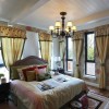 本案例是田园风格的装修设计,该风格展现的是一种贴近于自然、融于自然的感觉,在客厅的装饰布置当中,采用的是实木吊顶,个性的造型设计,让空间显得比较新颖独特,一盏具有凝聚力的吊灯安装,更是将空间的美展现得淋漓尽致,四周墙面铺贴上青色的壁纸,通过这种大自然的色彩装饰空间,给我们营造出一种身临其境的体验,实木铺设的地板,不仅有着很好的质感,而且还有着浓烈的古色古香气息,反观餐厅的设计,所占据的空间面积并不是很大,但通过设计师独具匠心的设计,却将餐厅布置得比较浪漫唯美,餐桌上高脚蜡烛的添加以及红酒杯的摆放,更是能体会到一种餐厅独有的浪漫。