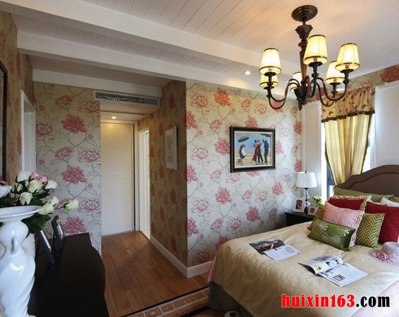 本案例是田园风格的装修设计,该风格展现的是一种贴近于自然、融于自然的感觉,在客厅的装饰布置当中,采用的是实木吊顶,个性的造型设计,让空间显得比较新颖独特,一盏具有凝聚力的吊灯安装,更是将空间的美展现得淋漓尽致,四周墙面铺贴上青色的壁纸,通过这种大自然的色彩装饰空间,给我们营造出一种身临其境的体验,实木铺设的地板,不仅有着很好的质感,而且还有着浓烈的古色古香气息,反观餐厅的设计,所占据的空间面积并不是很大,但通过设计师独具匠心的设计,却将餐厅布置得比较浪漫唯美,餐桌上高脚蜡烛的添加以及红酒杯的摆放,更是能体会到一种餐厅独有的浪漫。