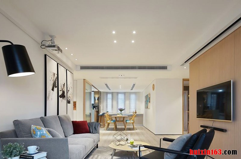 本案的业主是一对时尚小夫妻,两个人都带着一种简单干练的气场,正如这个空间所呈现的风格一样。客厅电视背景墙面采用大面积浅木色材质,大量木制品和实木家具的搭配完美诠释出整体色调,带来一种温润的视觉享受。